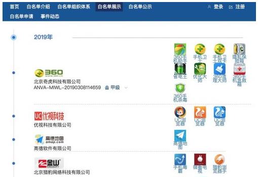 近日,中国反网络病毒联盟(ANVA)公布了 2019 年“移动互联网自律白名单”,360、优视科技、高德地图、金山、网秦、腾讯 6 家企业共 21 款应用入选。